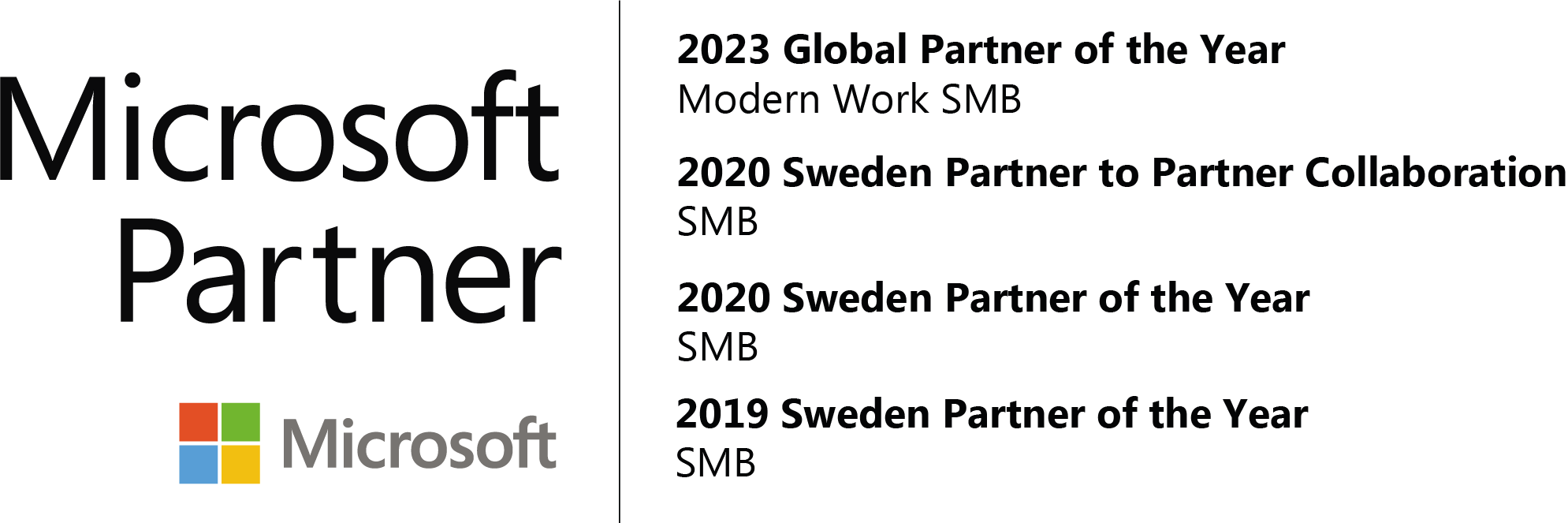 Vi har från start haft ett nära samarbete med Microsoft och har genom åren belönats med fina utmärkelser för vårt arbete med kunder då vi två år i rad fick ta emot priset som årets Microsoft partner inom kategorin ”Små och Medelstora bolag”. Det är en väldigt stor ära och ett kvitto på den kompetens vi besitter inom Microsofts plattformar och det motiverar oss att fortsätta utvecklas tillsammans med våra kunder.