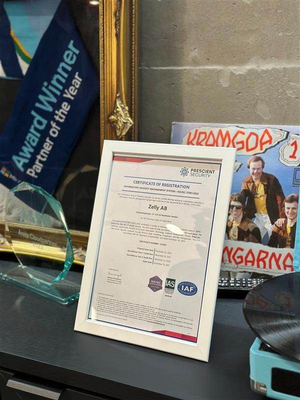 Vi är stolta över att meddela att Zelly innan årsskiftet uppnådde ISO/IEC 27001-certifiering!